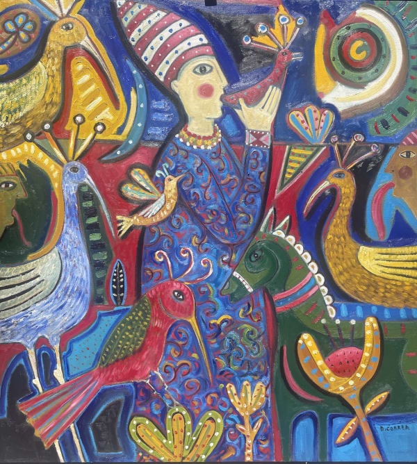 Humano, alegre, simbólico, lleno de movimiento. Tiene un marco de gran calidad que complementa la obra de forma balanceada.