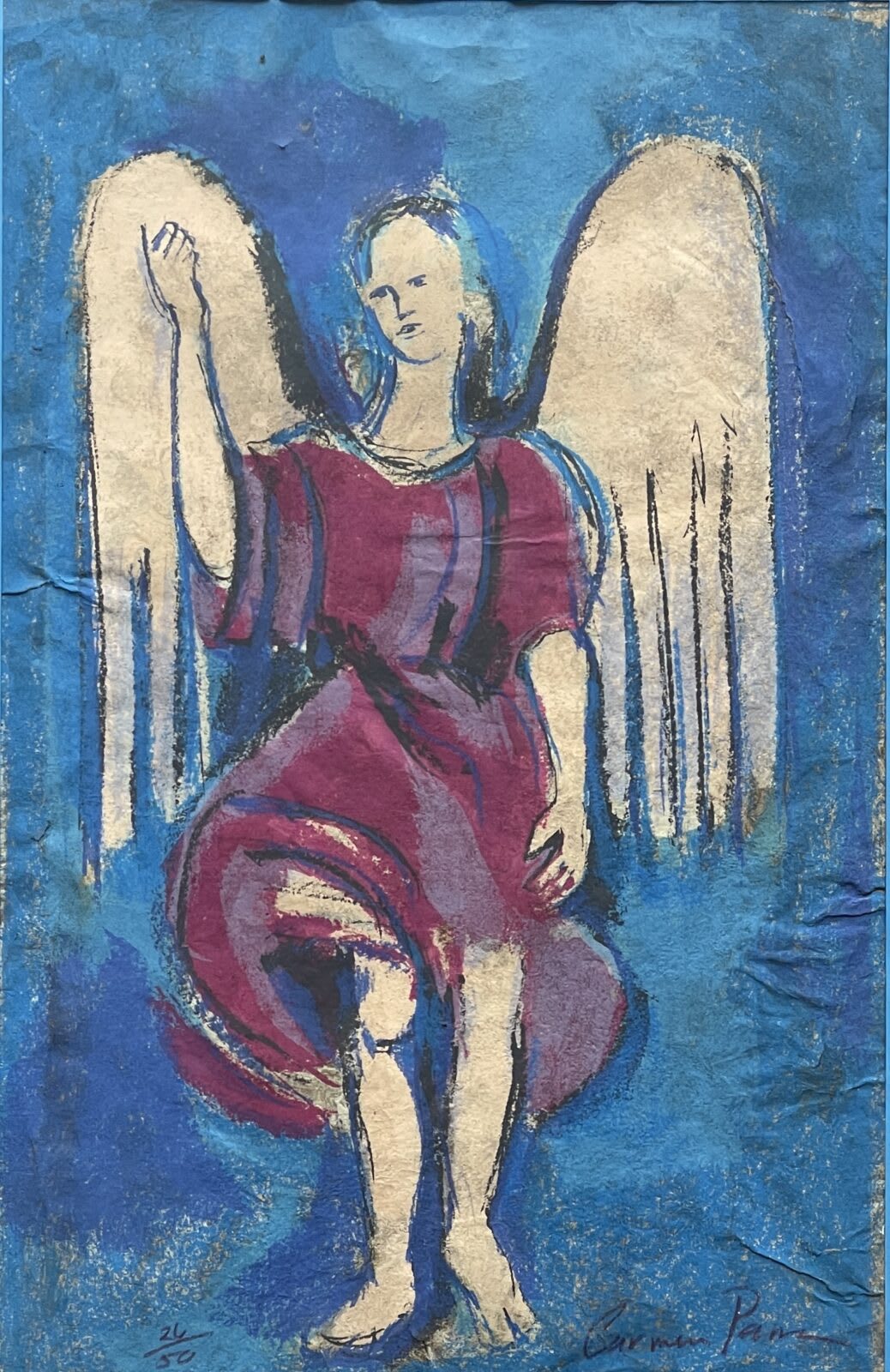 Es un grabado muy interesante, con rasgos figurativos y abstractos. Da la impresión de ser collage y es únicamente grabado.